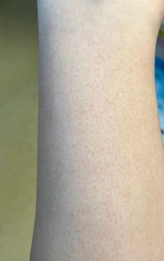 발등과 다리쪽에 작고 빨간 반점이 생겼어요 왜그럴까요?