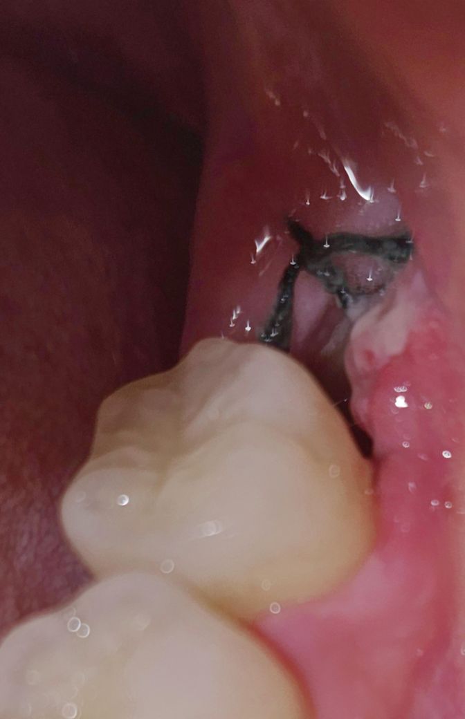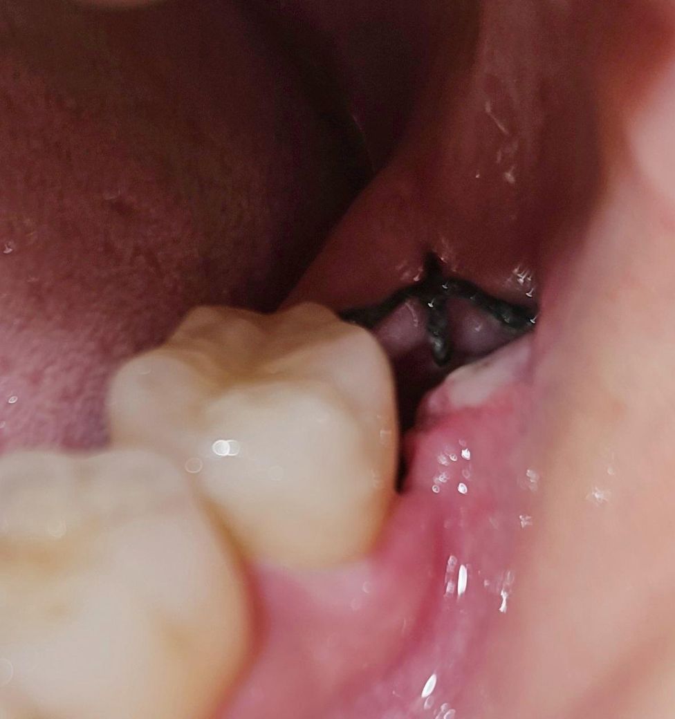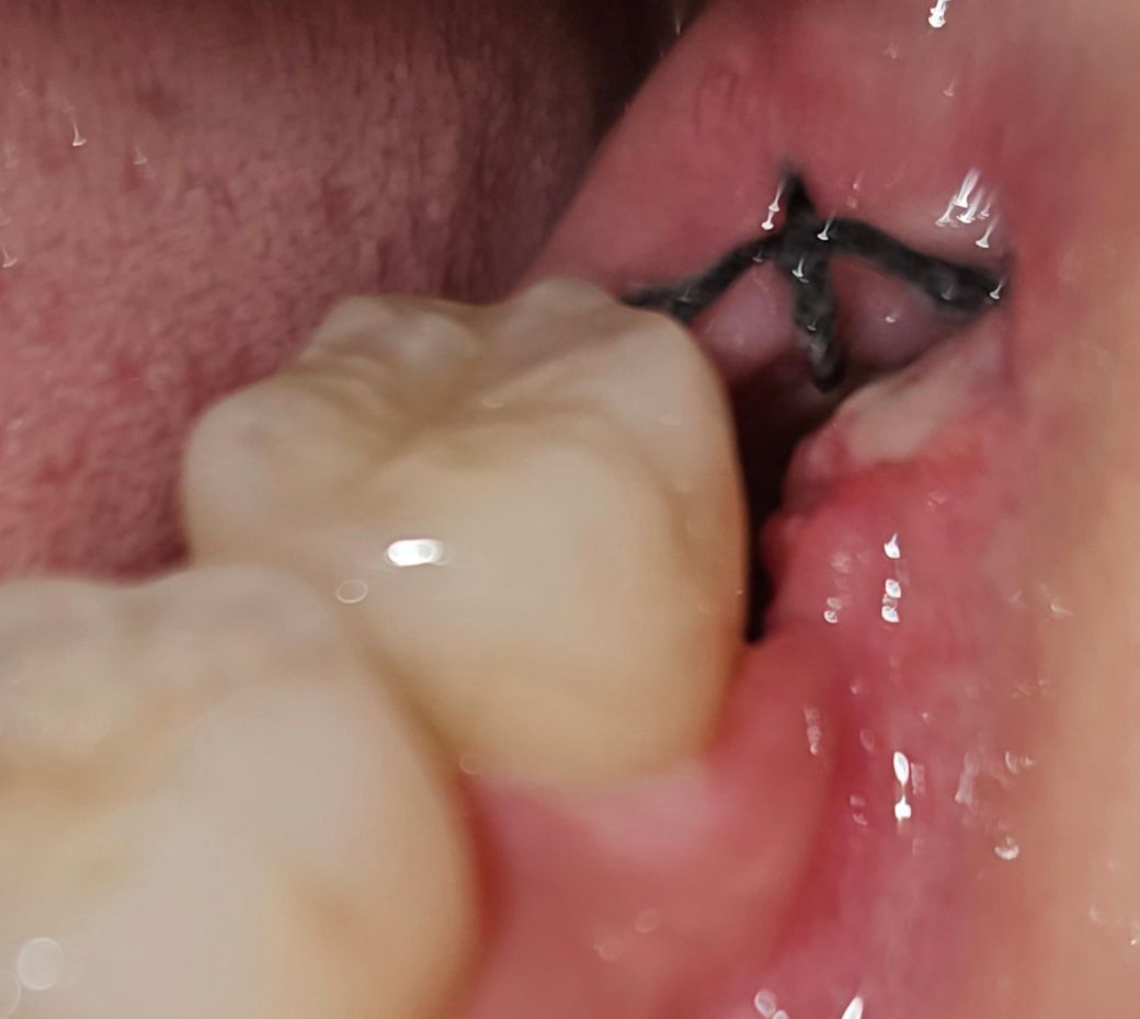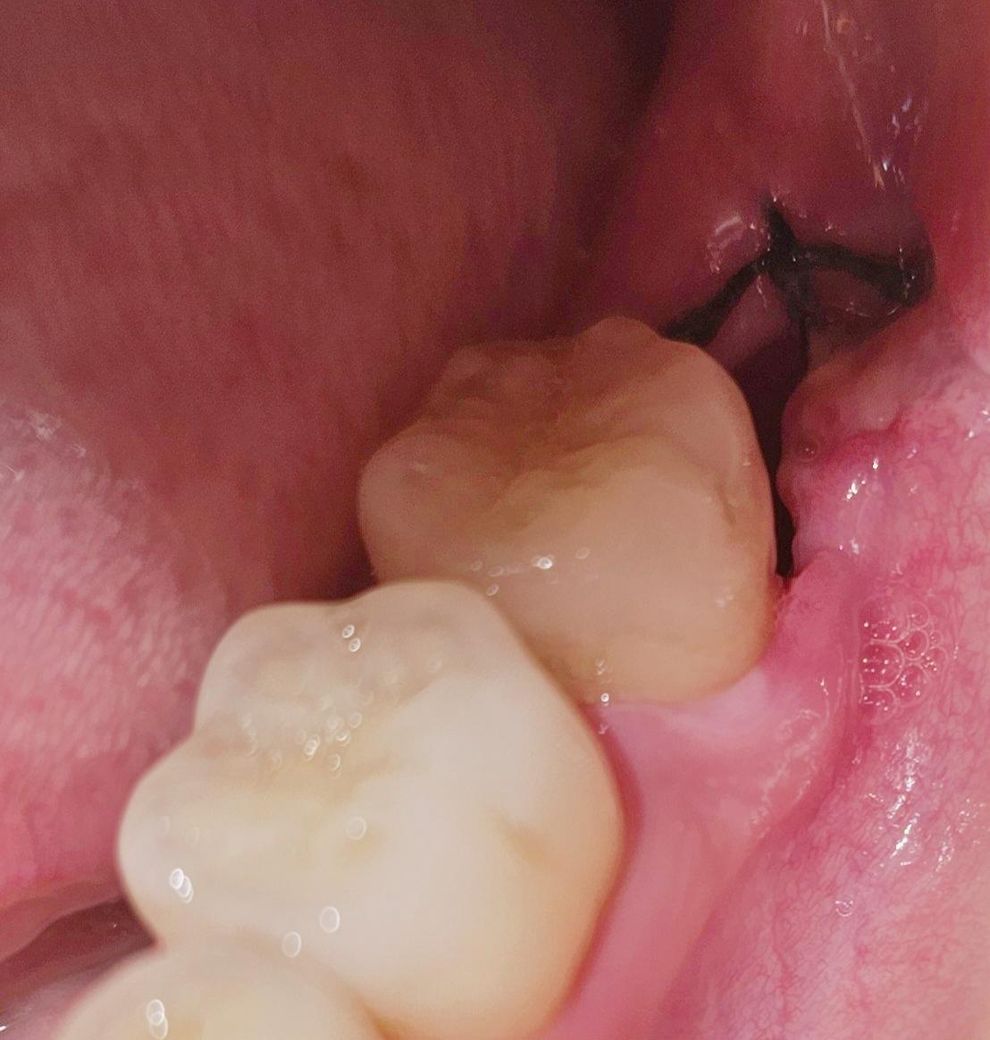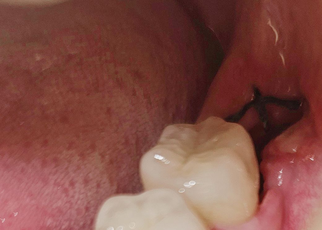 좌측 하악 매복사랑니를 발치하여 봉합을 하였고