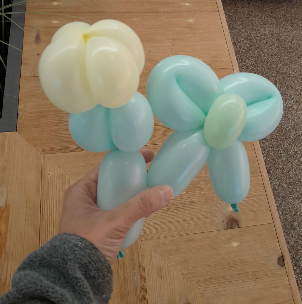 튤립꽃 만들때 한개가지고 조금길게 하다가 잘라서 방울꼬기 4개 만들어 꽃잎3~4개 만들고 리본도 자른것끼리 분리해서 묶어서 했어요.미니손펌프로 요술풍선 끝까지 불려면 쉬지않고 눌러야돼요?
