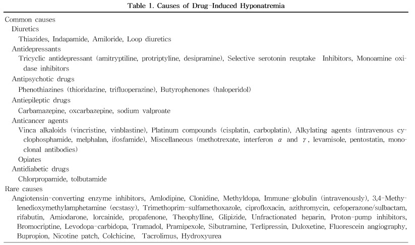 저희 친정엄마(66세)께서 5~8월 세번정도 저나트륨혈증으로 수액교정입원치료 받으셨어요. 어제 퇴원할때 드시는 정신의학과약중