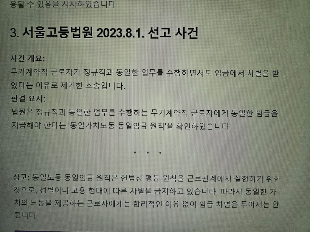 무기계약직 근로자와 정규직과 관련된 동일노동 동일임금 선고 판례 번호를 알고 싶습니다.