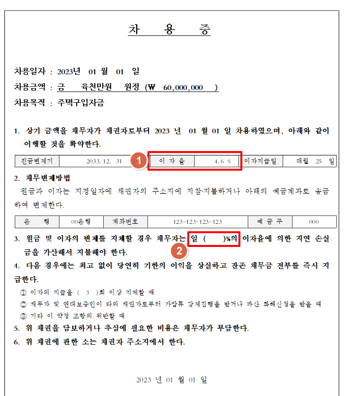 첨부된 사진처럼 차용증을 작성하려고 합니다.