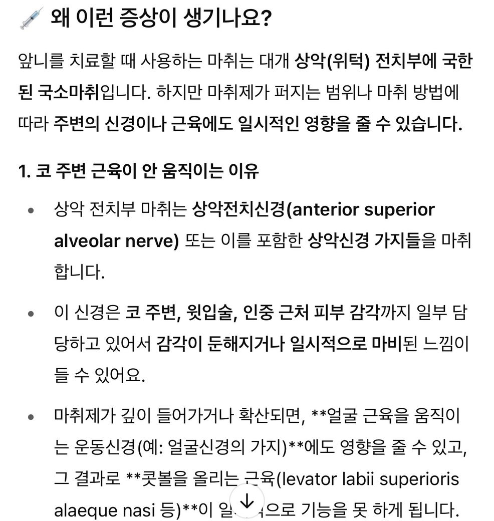 앞니 마취 후 인중이 붓고 코가 제대로 안 움직입니다…