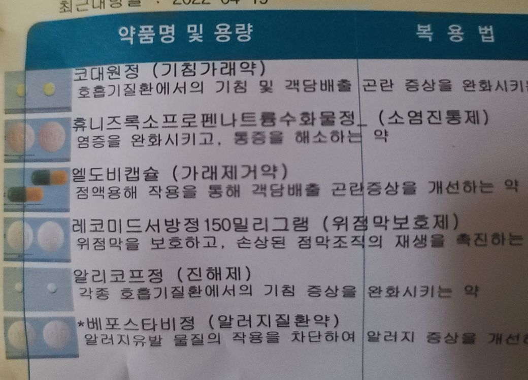 방광염약은 우선 계속 드시고, 아래 감기약은 휴니즈록소프로펜정/베포스타비정만 빼고 드시길 바랍니다.