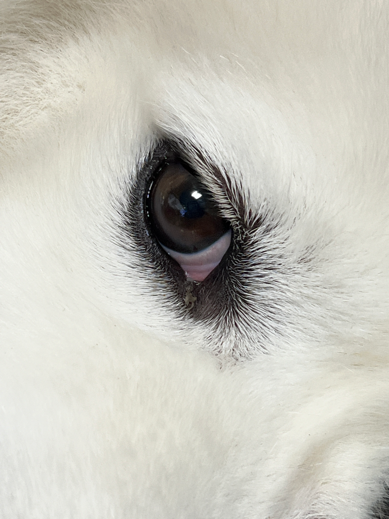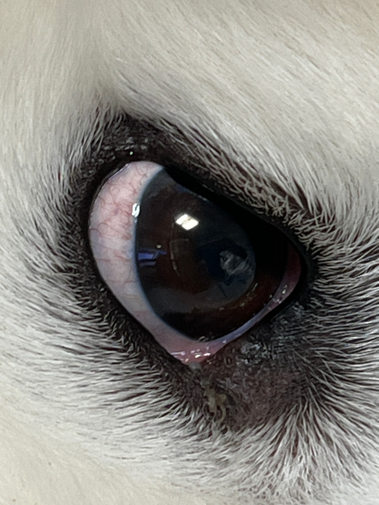 눈곱이 아니라 제 3안검입니다. 하지만 눈이 너무 붉게 충혈되어 있네요. 빨리 병원 내원하여 검사를 받아보시는 것이 좋겠습니다. 충혈되어있는 것은 정상 상태가 아닙니다.