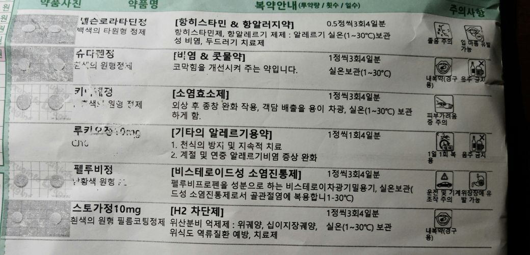 현재 복용하는 약제 중 슈다펜은 코막힘에 효과가 좋은 약으로 그럼에도