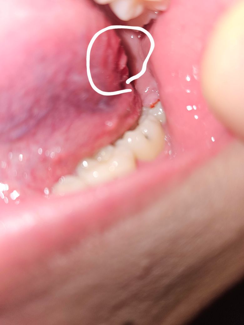 구강 내 연조직 병소의 경우 사진만 보고는 정확한 판단이 어렵습니다 구강내과 내원해보시기 바랍니다