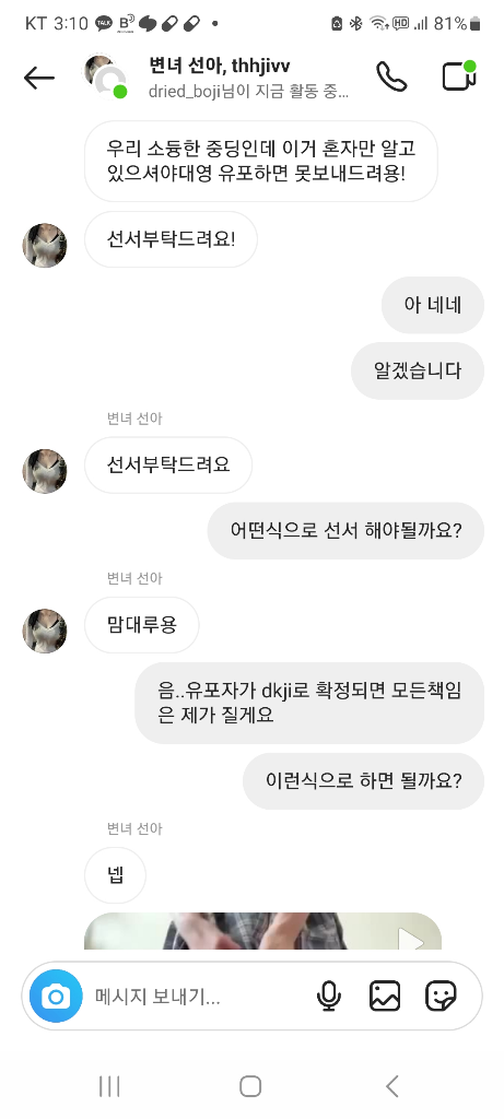 본인 스스로 영상을 팔면서 구매자를 협박해 돈을 뜯어내는 공갈범죄에 당하신 것으로 보이며