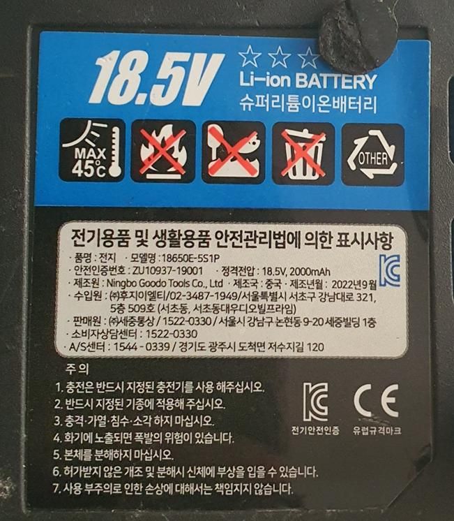 JECROLL사의 JK-2DX185F라는 해머 드릴을 사용 중인데, 배터리 충전기를 새로 사야합니다.