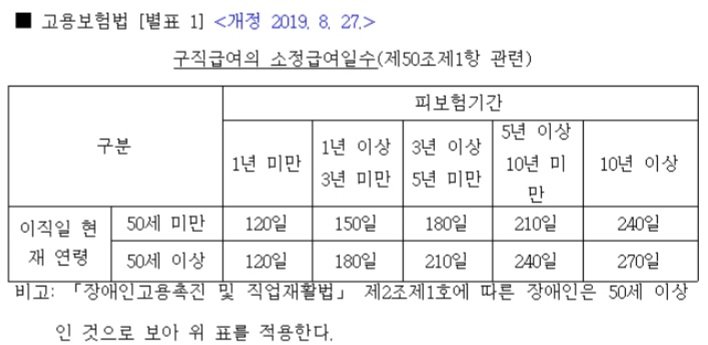 3. 고용보험 가입기간과 연령에 따라 결정됩니다. 고용보험법 별표를 참고하시기 바랍니다.