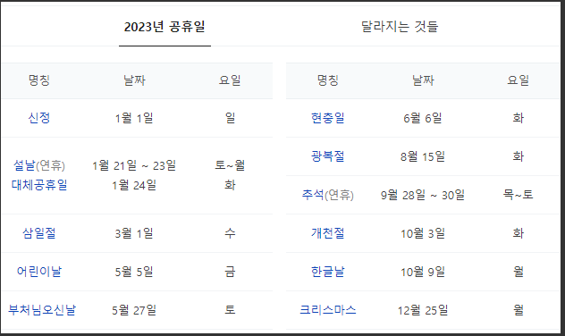 그리고 설·추석 연휴, 어린이날, 국경일 중 3.1절, 광복절, 개천절, 한글날이 토·일요일 다른 공휴일과 겹치면 다음 비공휴일이