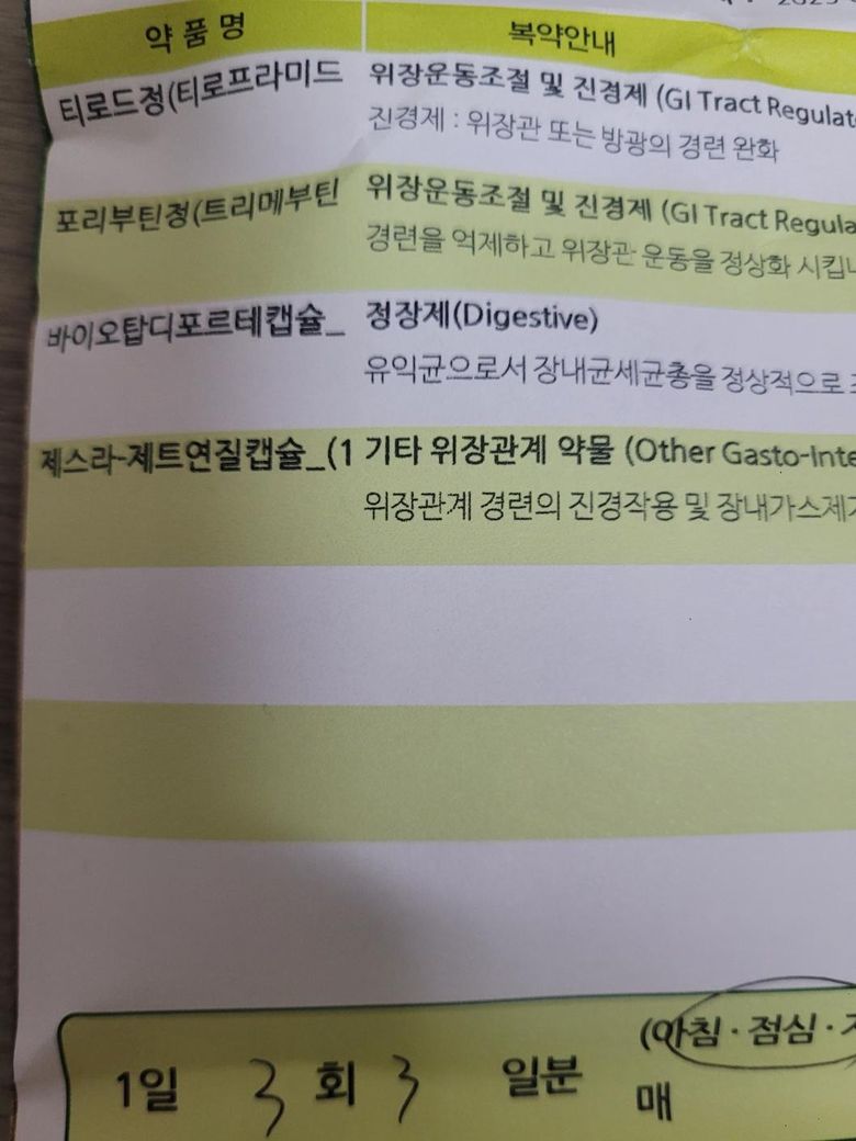 오늘 묽은변과 가스가 차서 이 약들을 먹고 있는데 변이 계속 나올거같은 느낌이