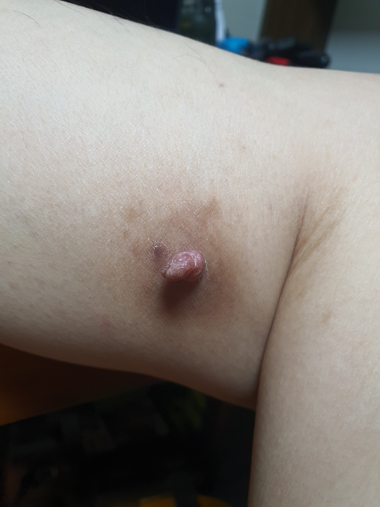 그러다 1년 전 부터 염증이 일어난거 처럼 빨갛게 붓고 아프더니 피지가 나오는 부분으로 저렇게 쥐젖 같은게 점점 커지더군요 (사방을 검색해 봤는데 제일 비슷한 형태가 쥐젖인 연성 섬유종이었습니다)