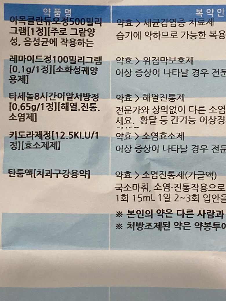 또한 염증약이라고 말씀하신건 항생제, 소염제가 따로 있어서 그렇습니다.
