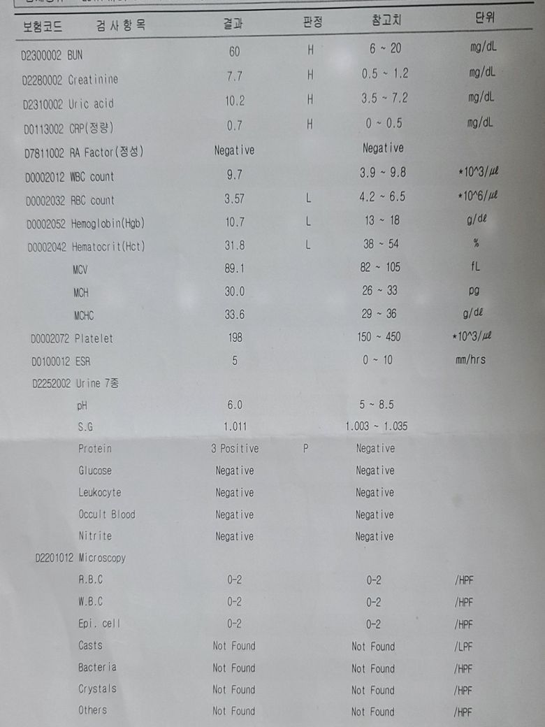 신부전증 신장 관련해서 피검사 한거 문의좀 드려봅니다