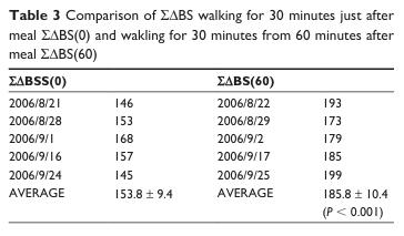 위 표의 경우 왼쪽은 식후 바로 걷는거 오른쪽은 식후 한시간 뒤 걷는거의 혈당변화입니다.