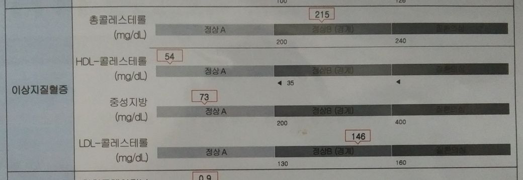 총콜레스테롤과 LDL콜레스테롤이 정상B 경계안에 있으면 정상인건가요?