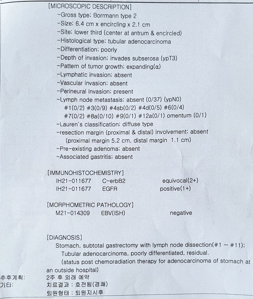 위암 수술 후 조직검사 결과지