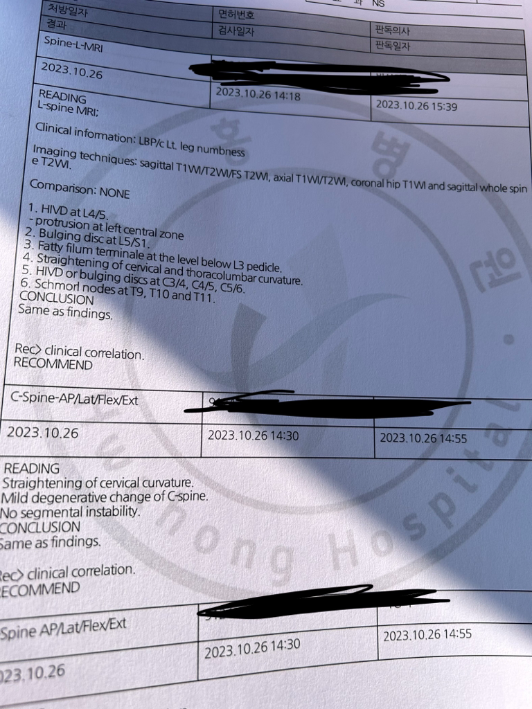 MRI 검사 결과에 대해 질문해 주셨는데요, 답변해 드리겠습니다.