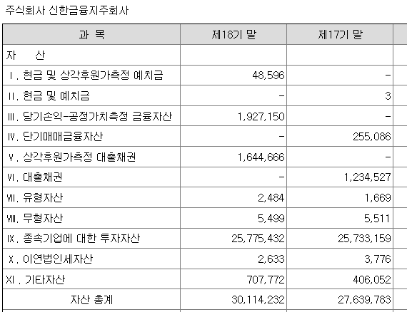신한금융지주는 기존 적용하고 있던 <기업회계기준서 제1039호 '금융상품: 인식과 측정'>의 적용을 중지하고 2018년 1월 1일 이후 최초로 시작되는 회계연도부터 <기업회계기준서 제1109호 '금융상품'>으로 대체하였습니다.