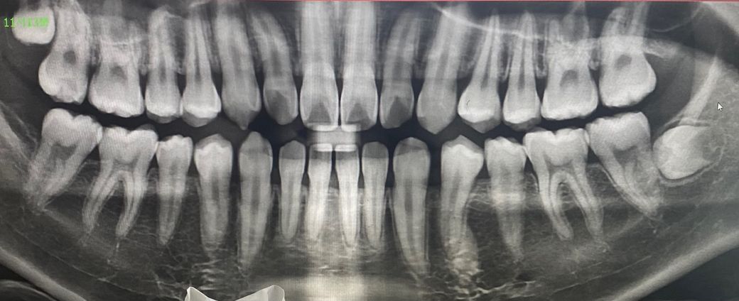 파노라마 상으로 안쪽에 충치가 깊은것 같습니다. 큰 사진보다는 정확하게 보기 위해서 작은 사진을 더 찍어보시는게 좋을것같습니다.
