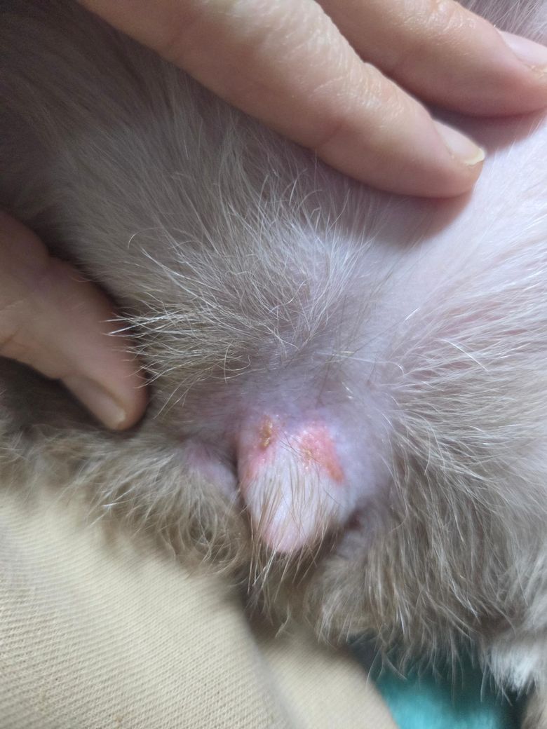 살이 겹치는 부위의 습한 환경으로 인한 간찰진이나 단순 피부염일 가능성이 높으나 수포 형태의 병변과 핥는 증상은 세균성 농피증이나 곰팡이 감염 같은 2차 감염의 징후일 수 있어 주의가 필요합니다. 활력과 배뇨 상태가 양호하더라도 피부 병변의 양상이 단순 습진을 넘어설 수 있으므로 정확한 병원체 확인을 위한 세포 검사가 요구되며 가정 내 임의 판단보다는 동물병원 내원 후 정확한 진단을 통해 항생제나 항진균제 처방이 필요한지 확인하는 것이 합리적입니다.