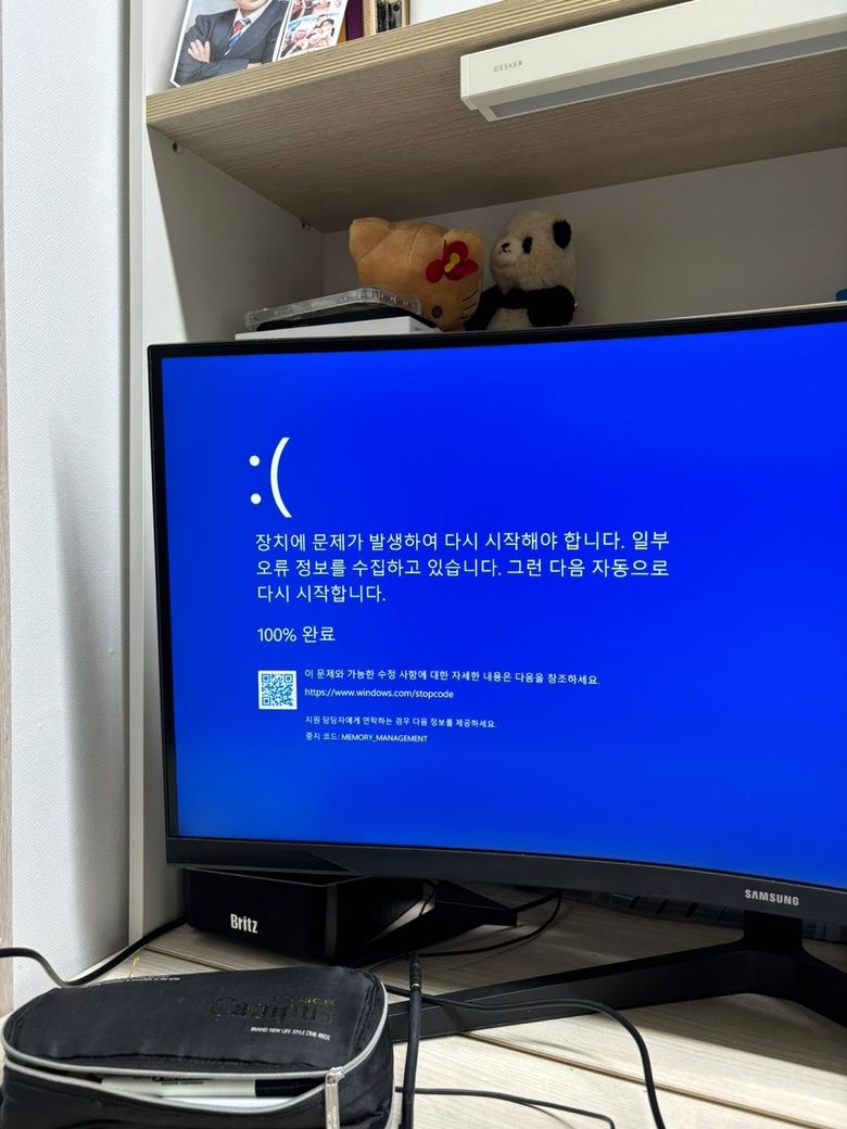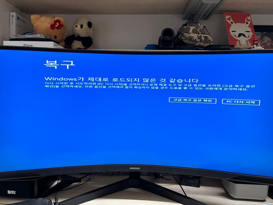윈도우 업뎃이후. 장치에 문제가 있어요 블루스크린 이 자꾸떠요 ㅠㅠ