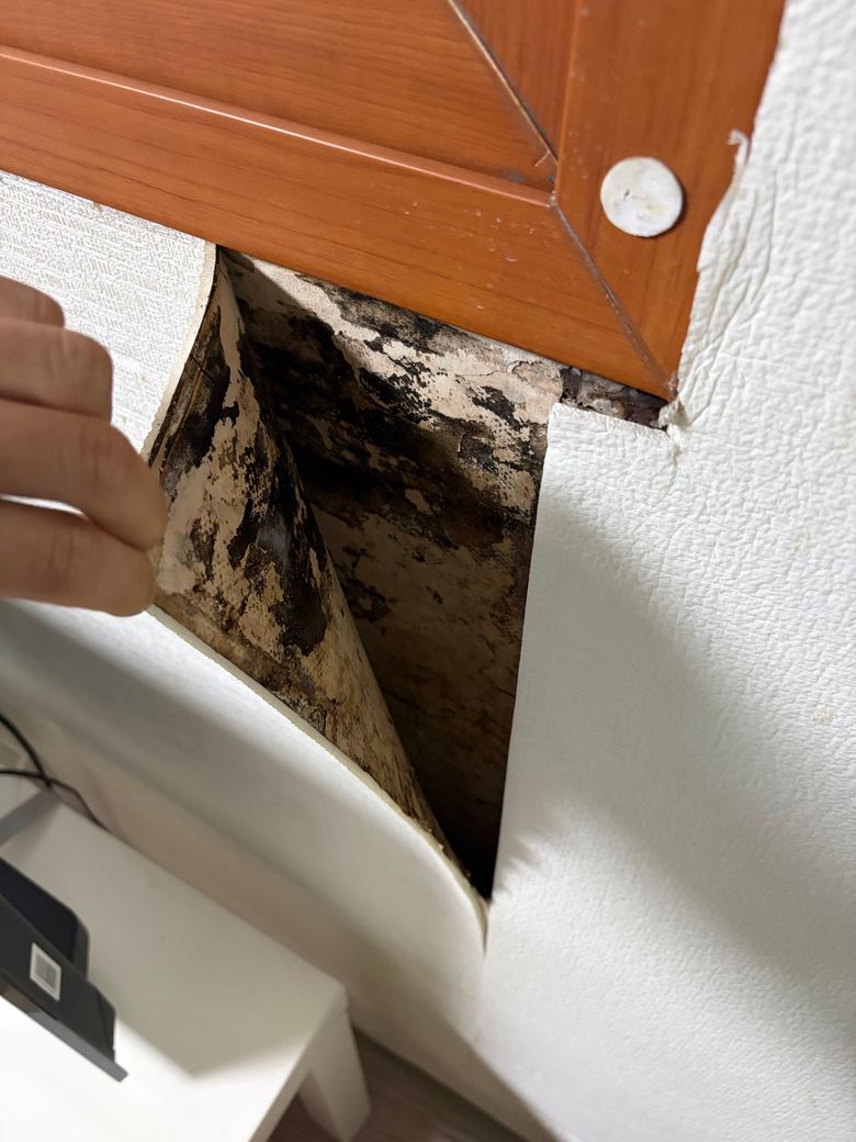 나는 곰팡이가 이렇게 벽뒤를 전부 뒤덮고 있는걸 알았으면 계약을 하지 않았을 거라고 하니까