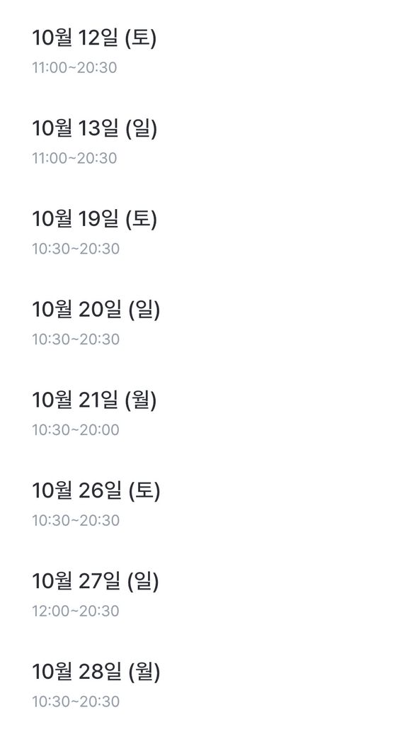 주말,월요일 근무시간 다른거에 대해서 따로 안내없었으며