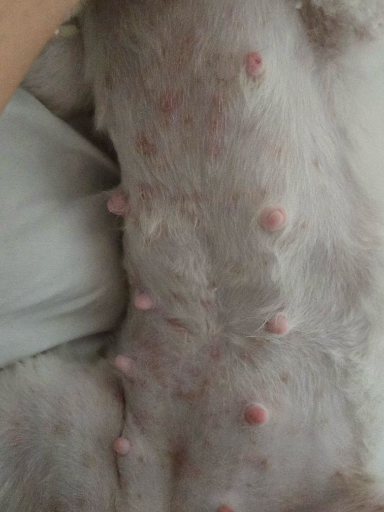 농피증 양상과 면역 반응이 동반된 양상으로 관찰되어, 먹는 것의 이상, 야외에서 접촉한 물질, 호르몬 영향등 모든것이 다 가능하니 동물병원에 데려가서 진료 받으시기 바랍니다. 간혹 죽기도 합니다.