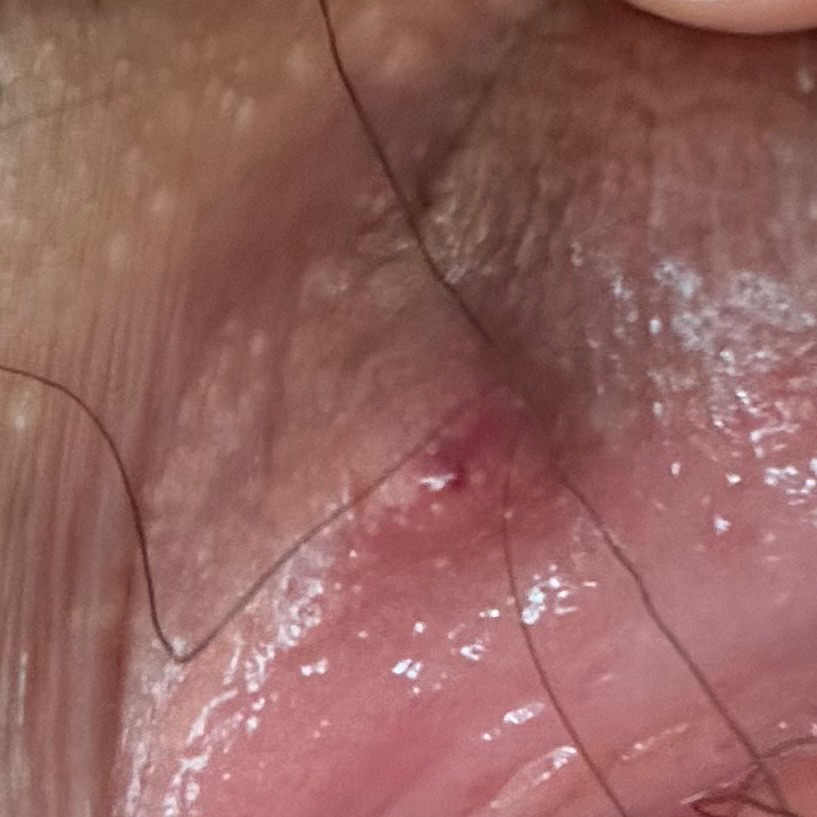 모낭염 등의 가능성이 있기 때문에 산부인과에 내원하시어 항생제 처방 또는 수술적 제거에 대해 상의를 해보시는 것이 좋겠습니다.