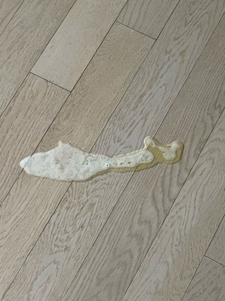 제가 잠깐 안보고 있을때 누런 액체를 토를 한건지 싼건지…헷갈려서 질문합니다. 평소에도 위가 좀 약한편이고 모래는 자주 갈아주고 벤토나이트와 카사바 섞어서 사용합니다 사진 첨부 해드릴게요