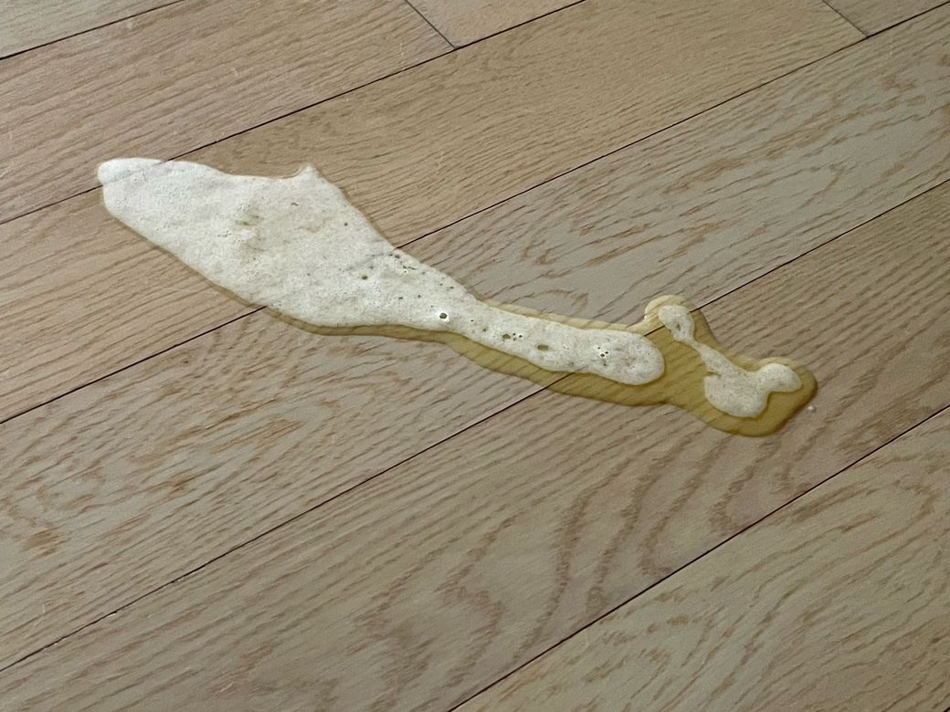 거품이 많이 포함된것으로 보아 구토에 의한 토사물로 판단됩니다. 구토여도 동물병원에 데려가서 원인 평가를 받아야 하고, 오줌이어도 심한 단백뇨를 의미하니 역시 동물병원에 가봐야 하는 소견입니다.