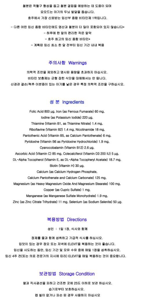 이건 호주직구 엘레비트 성분표구요