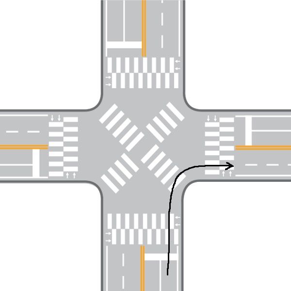 우회전 신호가 없는 대각선 횡단보도에서