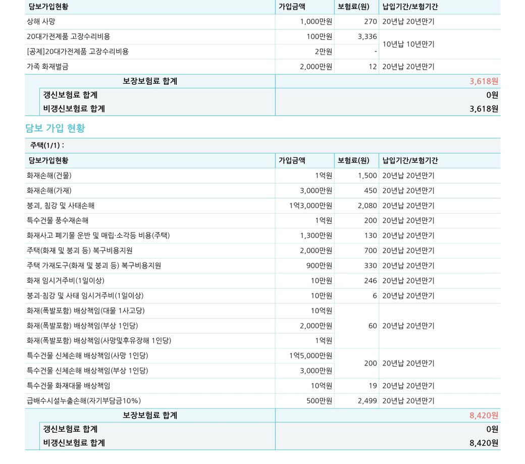 그리고 일상생활보험은 빠져 있는데 그 부분은 추가로 넣으시는 것을 추천드립니다.