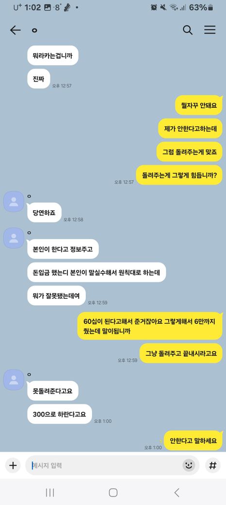 계속 돌려달라고했는데 메뉴얼대로 해야한다라고 말하고 계속 돈을 안돌려주십니다 도와주세요 부탁드리겠습니다 계속 안된다고만 하십니다
