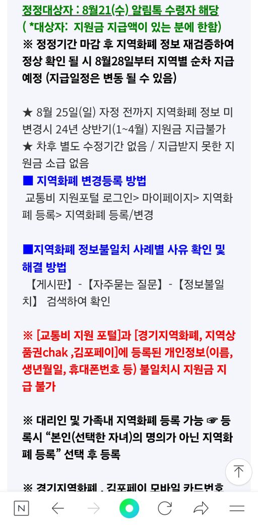 지금 지원금 신청 하려구 햇는데 교통카드와 경기지역화폐를 다시 입력하라고 하는데 입력 창이 어디있는지 잘 모르겠어요. 어떻게 해야할까요?