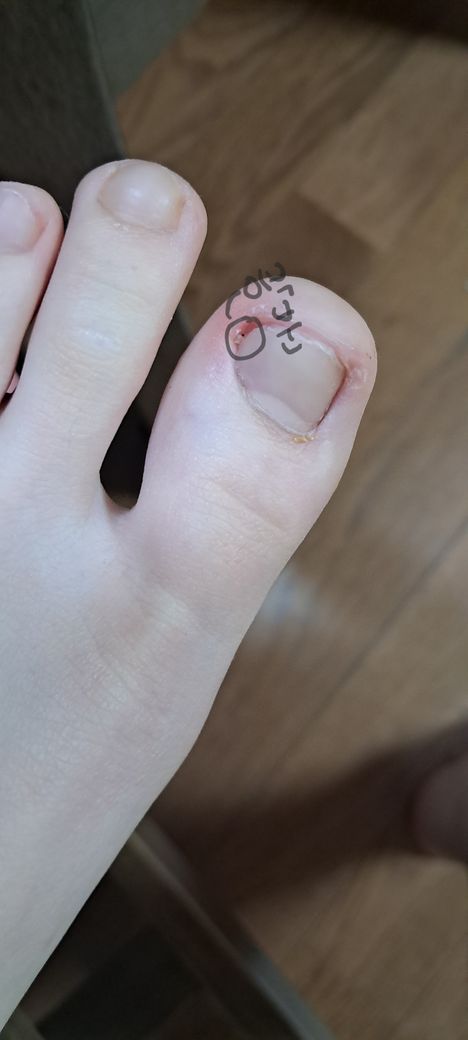 엄지 발가락 잘못 깍음 삐뚤빼뚤 깍아짐