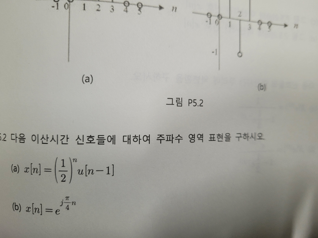b번 문제를 못풀겠어서 도움을 청합니다. 이산시간 신호에 주파수 영역 표현의 말이 푸리에 변환을 사용하라는 것인지 이해가 잘안됩니다.