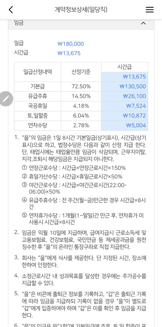 일급산정내용은 사진과 같습니다