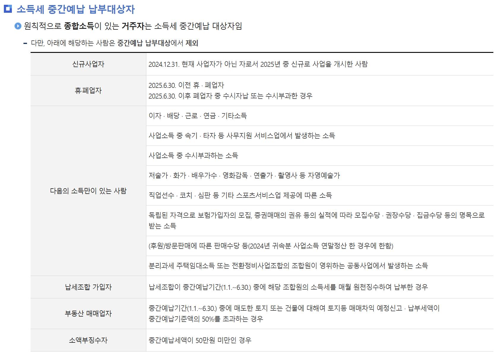 원칙적으로 종합소득이 있으면 중간예납 대상자가 됩니다.