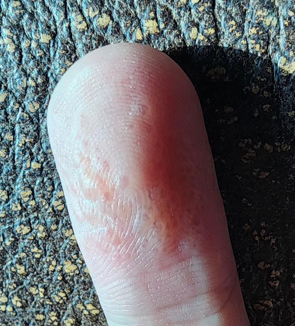 그 외에도 손가락의 한 부분에만 비교적 큰 물집들이 여러개 생긴다면 단순포진(헤르페스 감염)일 가능성도 있습니다.