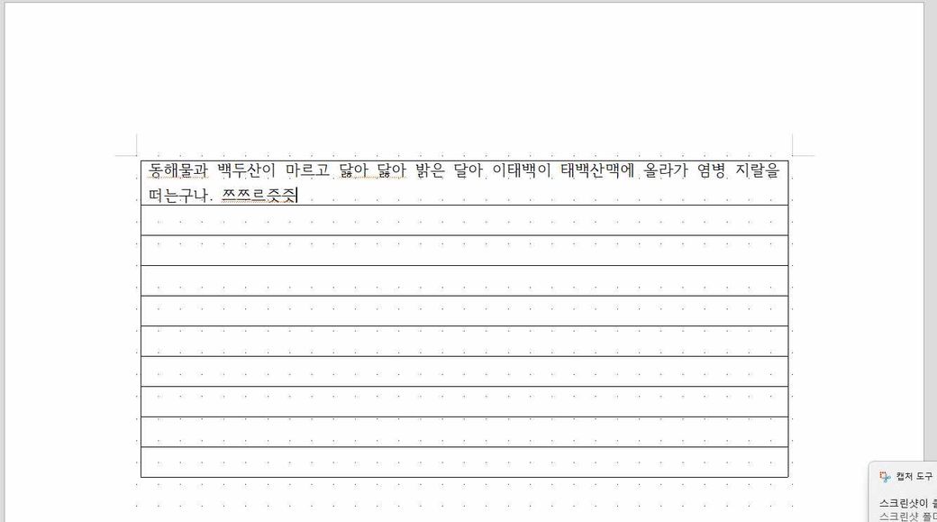 10줄짜리 표를 만들고, 첫 줄의 글이 가득 차면