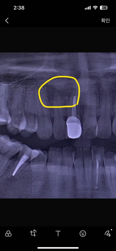 사진으로 봤을 경우 치근단 부위의 병소가 커 보입니다.
