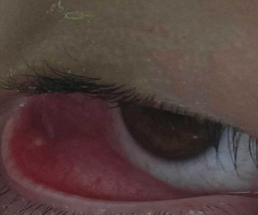 눈에희무언가 있어요. 통증도있고 불편해요