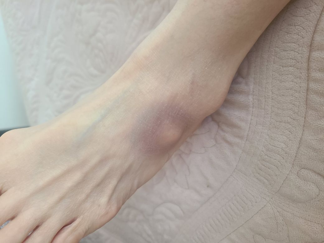 약 5년전 왼쪽 발목 인대를 다쳐서 프롤로 치료 등을 받았습니다. 이후 발목이 건강한 편은 아니었지만 최근에 특별한 외상등은 없었는데요 자고일어나니 발등이 빨갛더니 한두시간 후 보니 사진처럼 멍이 들었습니다. 통증은 없습니다.