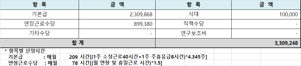 매월 연장근로수당 52시간