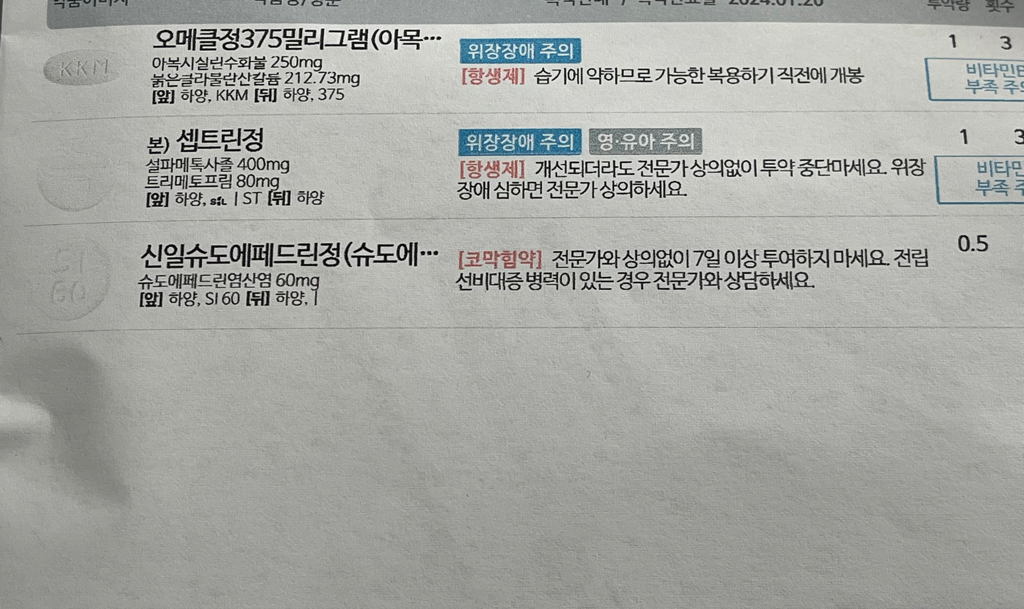 항생제 성분이 중복됩니다.