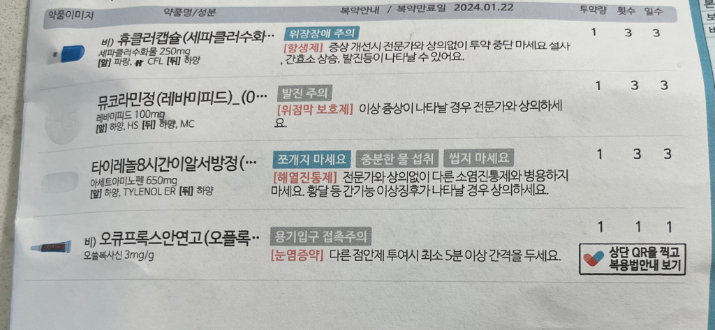 휴클러캡슐은 빼고 복용하시기 바랍니다. 이미 위에서 비슷한 항균범위를 가진 항생제를 복용하고 계십니다.